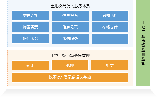 建立土地二級(jí)市場(chǎng)交易綜合管理平臺(tái),充分結(jié)合國(guó)土部門信息化現(xiàn)狀和登記成果數(shù)據(jù)現(xiàn)狀綜合考慮,利用可用資源,構(gòu)建信息網(wǎng)絡(luò),完成交易數(shù)據(jù)建庫(kù),實(shí)現(xiàn) "以數(shù)據(jù)為支撐、以系統(tǒng)為依托、以管理為導(dǎo)向” 的新型土地二級(jí)市場(chǎng)交易管理體系。